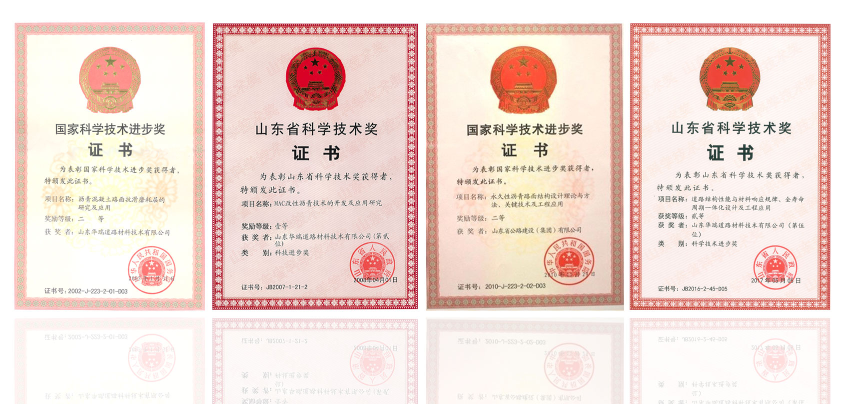 2、與山東省交通廳公路局合作完成的《MAC改性瀝青技術(shù)的開發(fā)與應(yīng)用研究》課題獲得2007年度山東省科技進(jìn)步一等獎。