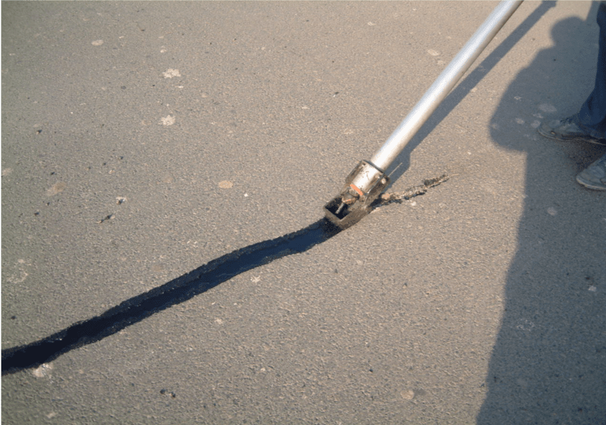 我公司采用美國技術(shù)和材料生產(chǎn)的一種快速修補路面裂縫的養(yǎng)護(hù)產(chǎn)品,具有粘接力強(qiáng)、拉伸量大的特點,能有效地封閉瀝青混凝土路面的裂縫或水泥混凝土路面的接縫,防止水分的侵入破壞。