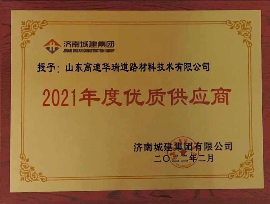 近日,山東高速華瑞公司榮獲濟南城建集團有限公司“2021年度優(yōu)秀供應(yīng)商”稱號。