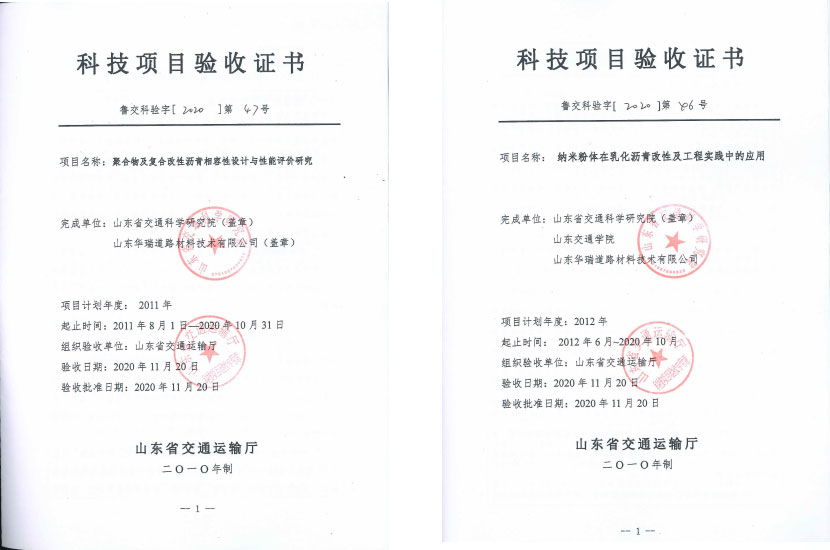 11月20日,華瑞公司與山東省交通科學(xué)研究院合作的《聚合物及復(fù)合改性瀝青相容性設(shè)計(jì)與性能評(píng)價(jià)研究》、《納米粉體在乳化瀝青改性及工程實(shí)踐中的應(yīng)用》兩項(xiàng)科研項(xiàng)目順利通過(guò)山東省交通運(yùn)輸廳組織的項(xiàng)目驗(yàn)收和成果評(píng)價(jià)。