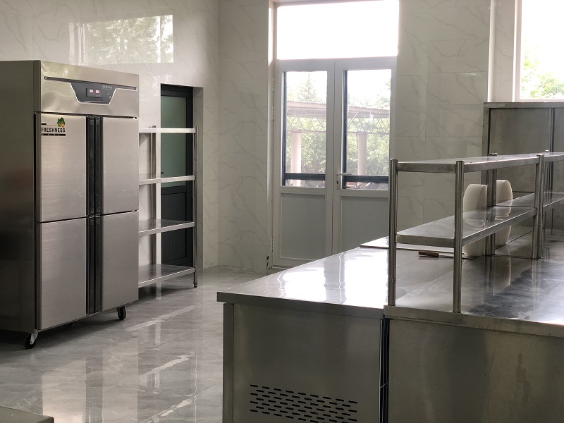 廚房全部新鋪設(shè)了地板磚和墻面磚,更換了部分門窗、環(huán)保排煙罩,并對(duì)部分老舊廚具和炊具進(jìn)行了重新購(gòu)置。餐廳墻面全部粉刷乳膠漆,整潔一新。