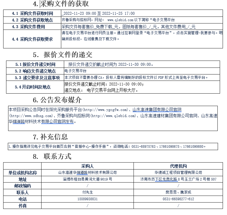 山東高速華瑞道路材料技術有限公司選取加工廠2022年底生產(chǎn)線維修改造施工方項目談判采購公告